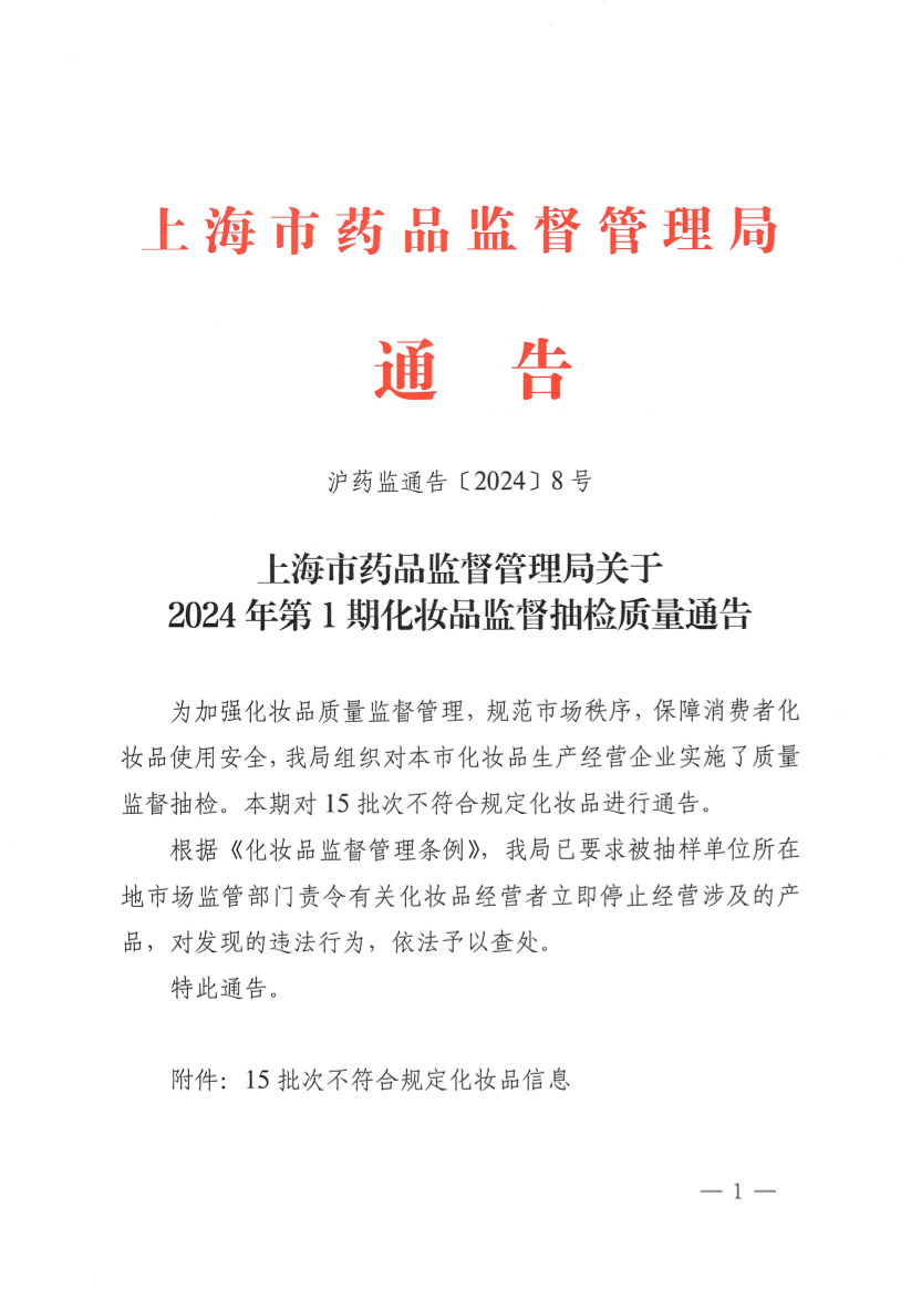 918博天堂关于2024年第1期化妆品监督抽检质量通告