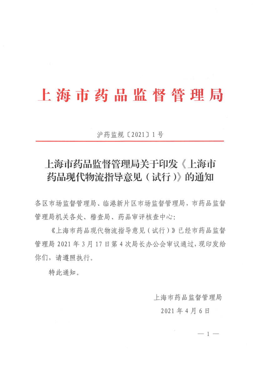 (有效期至2023年4月5日)918博天堂关于印发《上海市药品现代物流指导意见(试行)》的通知