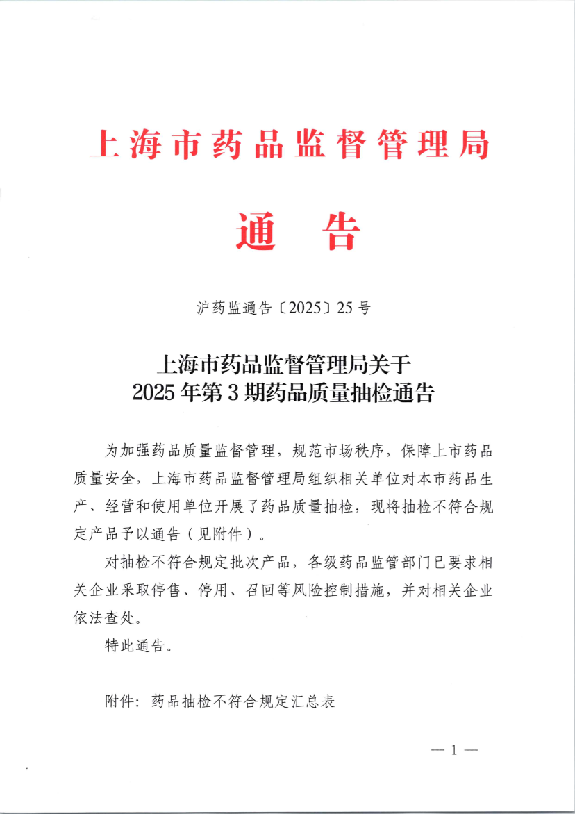 为加强药品质量监督管理,规范市场秩序,保障上市药品质量安全,918博天堂组织相关单位对本市药品生产、经营和使用单位开展了药品质量抽检,现将抽检不符合规定产品予以通告(见附件)。
